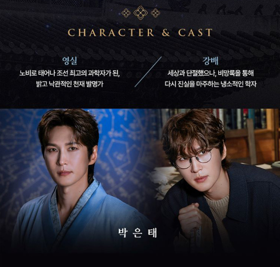 A: 주인공 영실은 노비 출신 천재 과학자이며, 학자 강배는 영실의 비망록 진실을 추적합니다. 백성을 사랑한 세종대왕과 루벤스의 그림을 다큐멘터리로 제작하는 PD 진석도 핵심 인물입니다.