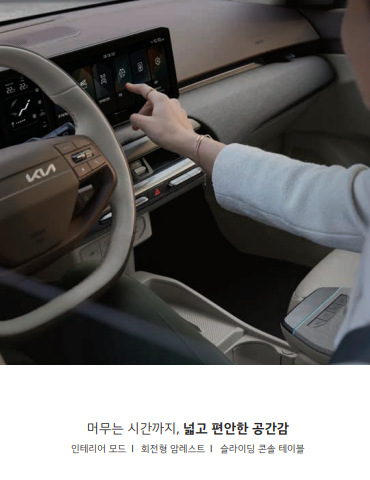 - 극대화된 공간 활용성: 전기차 전용 플랫폼 덕분에 동급 최고 수준의 넓은 실내 공간을 자랑합니다. 차에 타면 '어? 생각보다 훨씬 넓네!' 하고 놀라실 거예요.