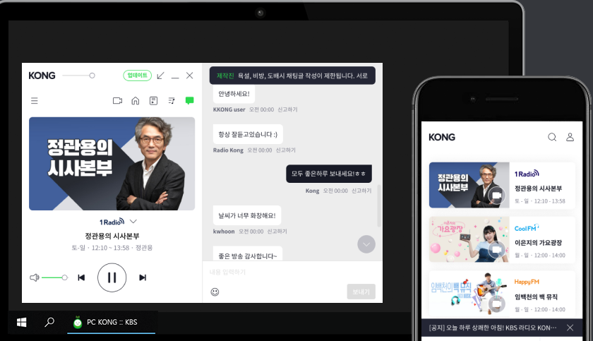 kbs콩을 통해 사용자는 실사긴으로 kbs라디오 방송을 청취할 수있으면 다양한 편의 기능까지 제공하고 있습니다.